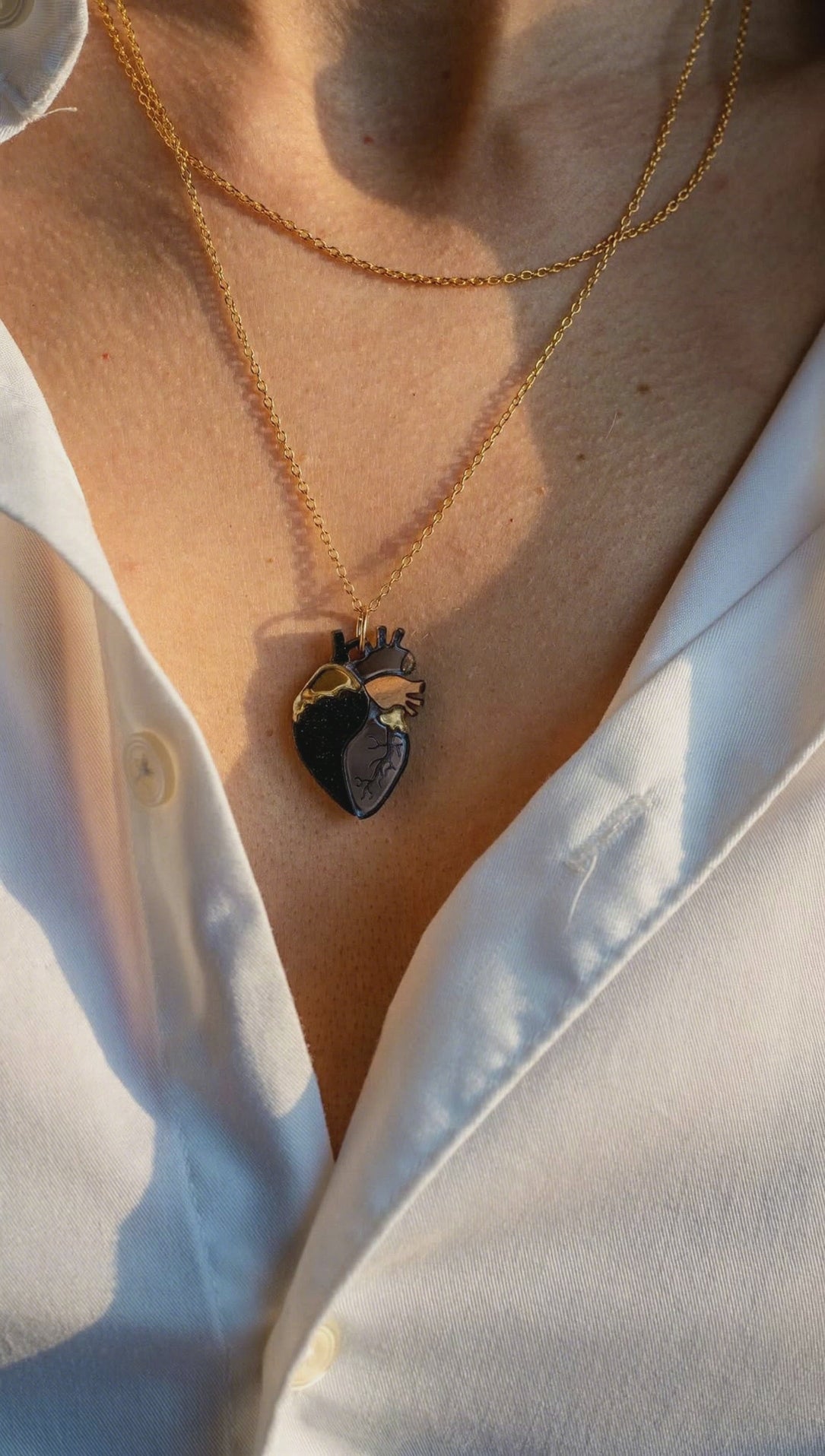 Un magnifique collier cœur anatomique fait main alliant art, science et style pour une pièce de bijouterie vraiment unique.
