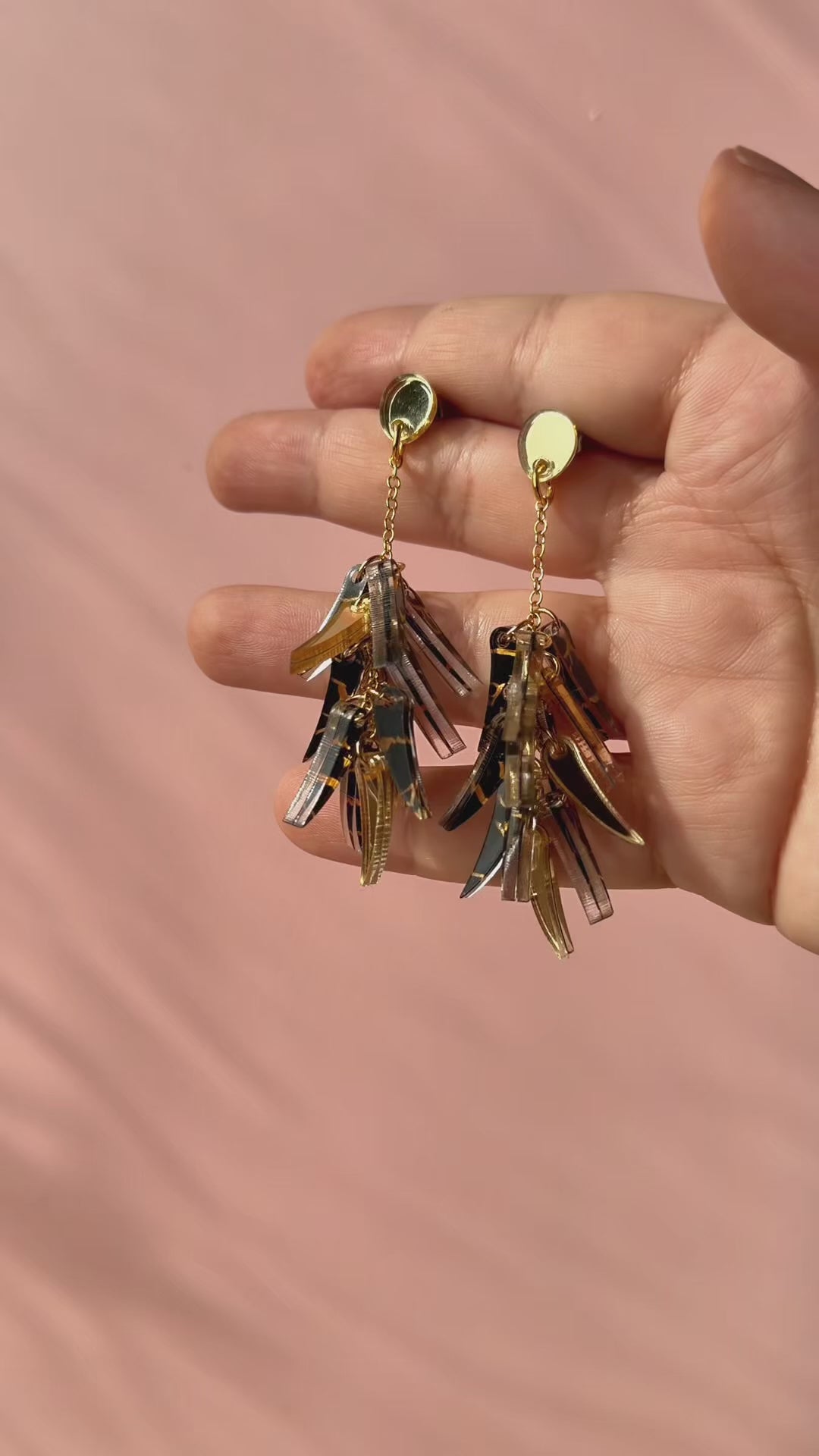 Portez-les une fois et vous comprendrez pourquoi tous les regards se tournent vers vous. Les boucles Tuft sont une cascade de feuilles en acrylique courbées qui pendent d'une délicate chaîne dorée, se balançant librement à chaque pas comme de petites palmes portées par une brise chaude. Choisissez parmi quatre personnalités distinctes : le noir écaille pour un look sauvage et graphique ; le blanc translucide aux veinures dorées chaudes pour un éclat subtil ; le tropic en orange vif et fuchsia pour un clash de couleurs plein volume ; et le lagoon, un mélange de menthe givrée et de paillettes bleu sarcelle qui semble tout droit sorti des fonds marins.