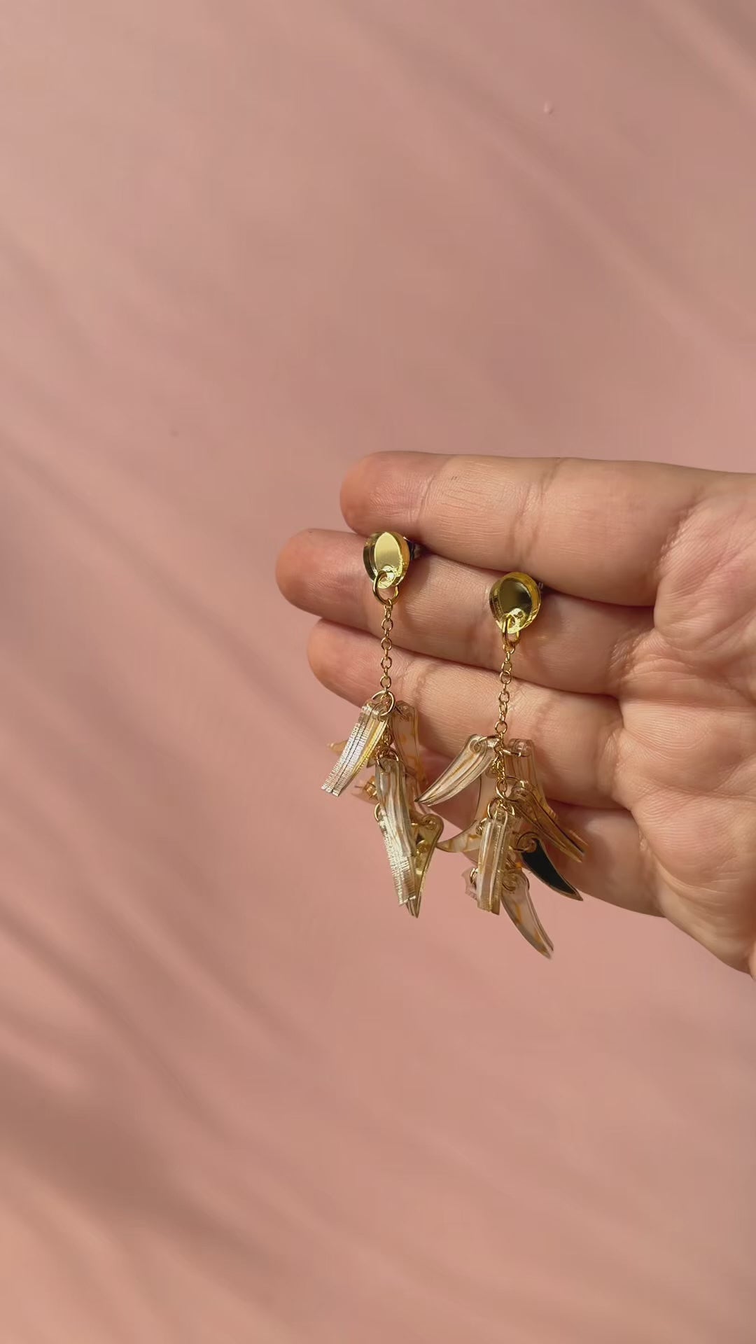 Portez-les une fois et vous comprendrez pourquoi tous les regards se tournent vers vous. Les boucles Tuft sont une cascade de feuilles en acrylique courbées qui pendent d'une délicate chaîne dorée, se balançant librement à chaque pas comme de petites palmes portées par une brise chaude. Choisissez parmi quatre personnalités distinctes : le noir écaille pour un look sauvage et graphique ; le blanc translucide aux veinures dorées chaudes pour un éclat subtil ; le tropic en orange vif et fuchsia pour un clash de couleurs plein volume ; et le lagoon, un mélange de menthe givrée et de paillettes bleu sarcelle qui semble tout droit sorti des fonds marins.