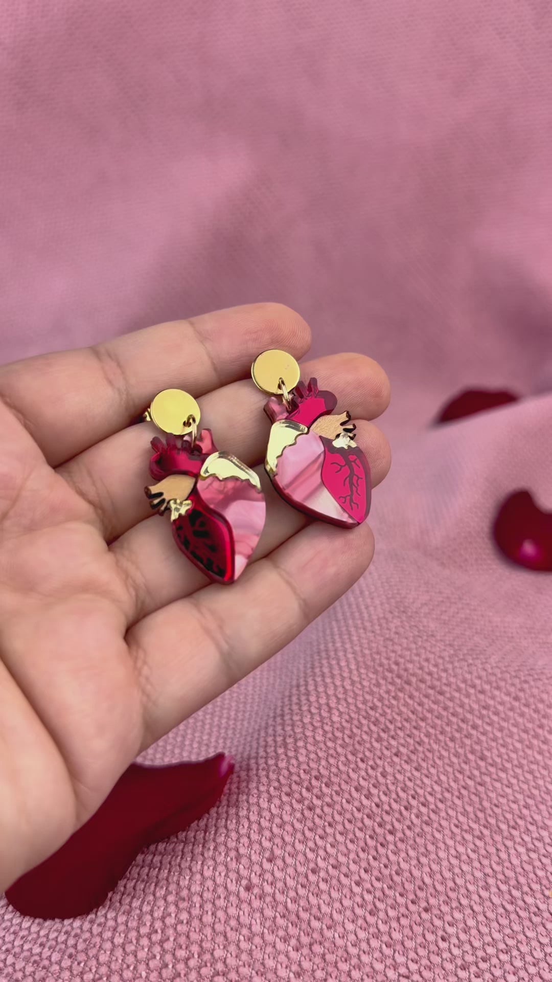 Explorez la mode avec nos boucles d'oreilles Cœur Anatomique, habilement fabriquées en verre acrylique de qualité supérieure. Présentant un mélange époustouflant de verre acrylique marbré rouge et miroir doré, ces boucles d'oreilles ne manqueront pas d'attirer les regards. Chaque paire est minutieusement découpée au laser et assemblée à la main, garantissant un détail remarquable et une finition impeccable.